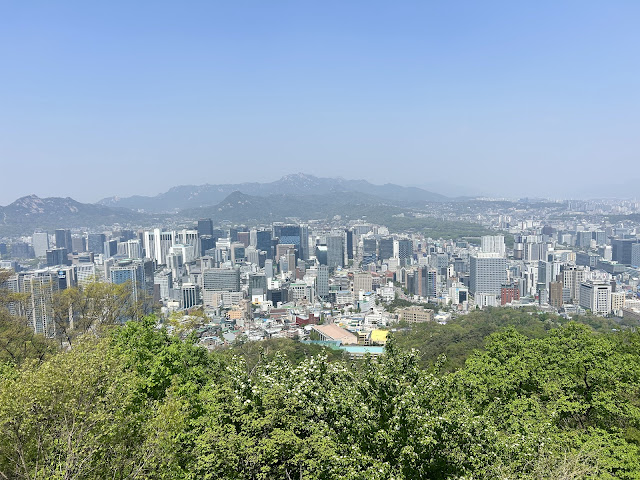 It was a beautiful Spring Day in Seoul. (See what I did there? IYKYK!) This is the view to the north from the ground level in front of the tower.