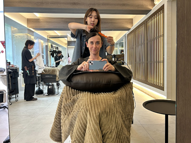 THEN, it's not over - they give you a hair growth tonic and another Y-stick infusion to make sure that gets into your pores and doesn't just sit on your hair. THEN (I'm very emphatic here!) they style and blow dry your hair. What an experience!